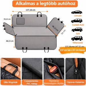 - Univerzális méret – nagyméretű kialakítás, ami a legtöbb autó hátsó ülésére könnyedén illeszkedik.